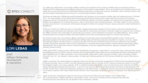 forecasts and budgets. She also worked in conjunction with ABC CNG Finance and ESPN Finance. Previously, LeBas was vice president,