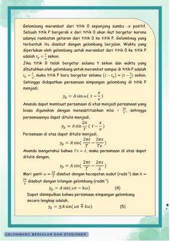 Gelombang merambat dari titik 0 sepanjang sumbu -x positif.