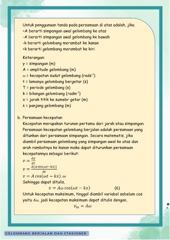 Persamaan kecepatan gelombang berjalan adalah persamaan yang