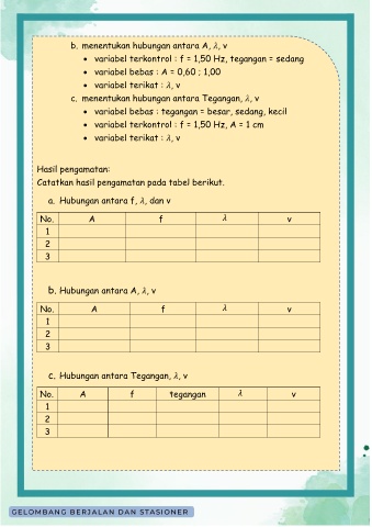 • variabel terkontrol : f = 1,50 Hz, A = 1 cm
