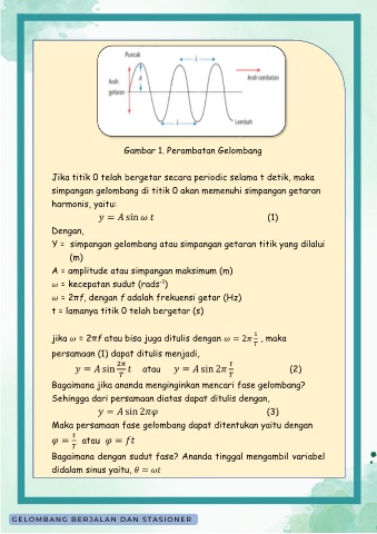 Y = simpangan gelombang atau simpangan getaran titik yang dilalui