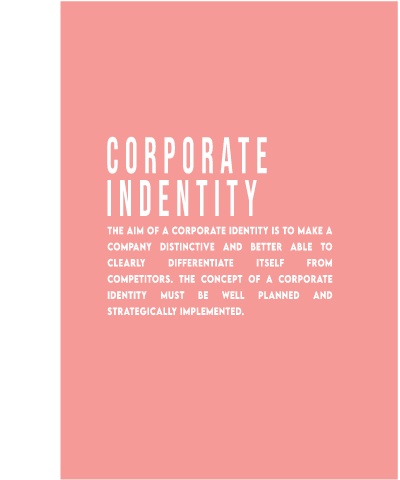 corporate indentity THE AiM OF A CORPORATE iDENTiTY iS TO MAKE A COMPANY DiSTiNCTiVE AND BETTER ABLE TO CLEARLY DiFFERENTiATE iTSELF FROM COMPETiTORS. THE CONCEPT OF A CORPORATE iDENTiTY MUST BE WELL PLANNED AND STRATEGiCALLY iMPLEMENTED.