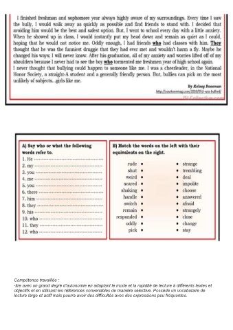 lecture large et actif mais pourra avoir des difficultés avec des expressions peu fréquentes.