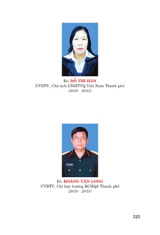 Ñ/c ÑOÃ THÒ HAÂN UVBTV, Chuû tòch UBMTTQ Vieät Nam Thaønh phoá (2010 - 2015) Ñ/c HOAØNG VAÊN LONG UVBTV, Chæ huy tröôûng BCHQS Thaønh phoá (2010 - 2015) 325