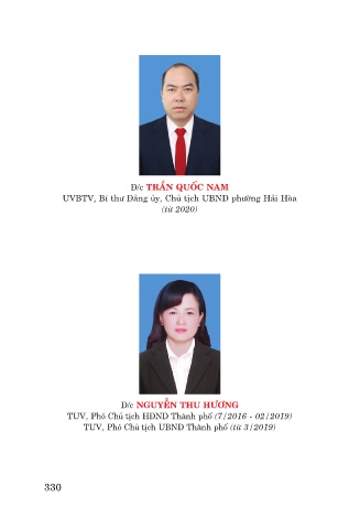 Ñ/c TRAÀN QUOÁC NAM UVBTV, Bí thö Ñaûng uûy, Chuû tòch UBND phöôøng Haûi Hoøa (töø 2020) Ñ/c NGUYEÃN THU HÖÔNG TUV, Phoù Chuû tòch HÑND Thaønh phoá (7/2016 - 02/2019) TUV, Phoù Chuû tòch UBND Thaønh phoá (töø 3/2019) 330