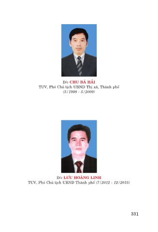 Ñ/c CHU BAÙ HAÛI TUV, Phoù Chuû tòch UBND Thò xaõ, Thaønh phoá (5/1998 - 5/2009) Ñ/c LÖU HOAØNG LINH TUV, Phoù Chuû tòch UBND Thaønh phoá (7/2012 - 12/2015) 331