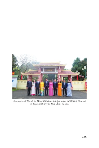 Đoàn cán bộ Thành ủy Móng Cái chụp ảnh lưu niệm tại Di tích Khu mộ cố Tổng Bí thư Trần Phú (Ảnh: tư liệu) 415
