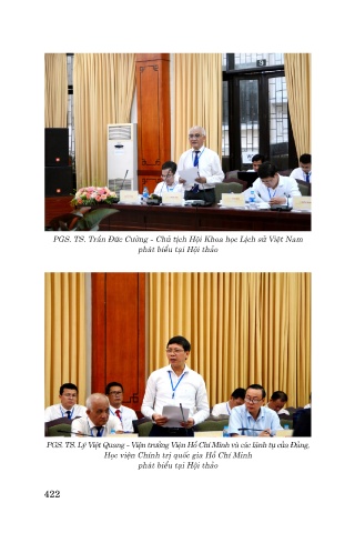PGS. TS. Trần Đức Cường - Chủ tịch Hội Khoa học Lịch sử Việt Nam phát biểu tại Hội thảo PGS. TS. Lý Việt Quang - Viện trưởng Viện Hồ Chí Minh và các lãnh tụ của Đảng, Học viện Chính trị quốc gia Hồ Chí Minh phát biểu tại Hội thảo 422