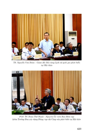 TS. Nguyễn Văn Đoàn - Giám đốc Bảo tàng Lịch sử quốc gia phát biểu tại Hội thảo PGS. TS. Đoàn Thế Hanh - Nguyên Ủy viên Ban Biên tập kiêm Trưởng Ban xây dựng Đảng, tạp chí Cộng sản phát biểu tại Hội thảo 423