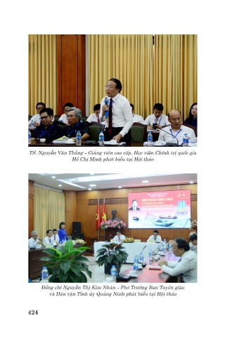 TS. Nguyễn Văn Thắng - Giảng viên cao cấp, Học viện Chính trị quốc gia Hồ Chí Minh phát biểu tại Hội thảo Đồng chí Nguyễn Thị Kim Nhàn - Phó Trưởng Ban Tuyên giáo và Dân vận Tỉnh ủy Quảng Ninh phát biểu tại Hội thảo 424