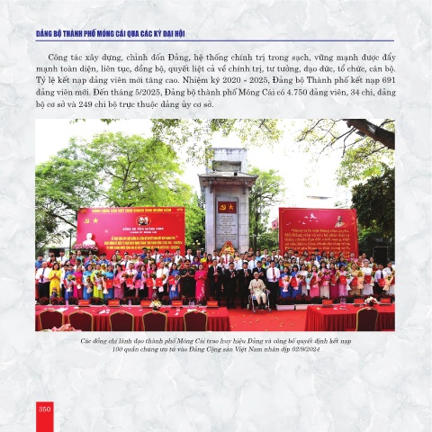 đảng viên mới. Đến tháng 5/2025, Đảng bộ thành phố Móng Cái có 4.750 đảng viên, 34 chi, đảng