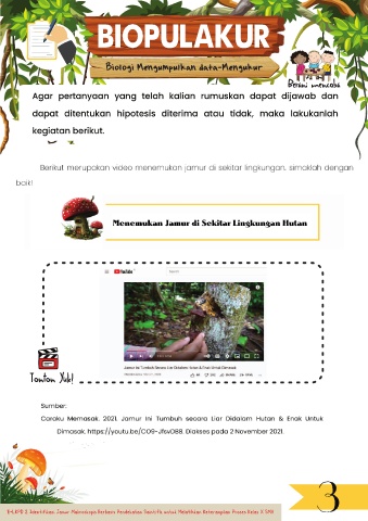 BIOPULAKUR Biologi Mengumpulkan data-Mengukur Menemukan Jamur di Sekitar Lingkungan Hutan Tonton Yuk! 3 E-LKPD 2 Identifikasi Jamur Makroskopis Berbasis Pendekatan Saintifik untuk Melatihkan Keterampilan Proses Kelas X SMA