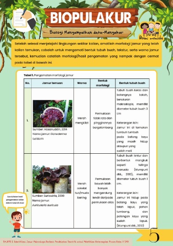 BIOPULAKUR Biologi Mengumpulkan data-Mengukur Volk, 2009 E-LKPD 2 Identifikasi Jamur Makroskopis Berbasis Pendekatan Saintifik untuk Melatihkan Keterampilan Proses Kelas X SMA 5