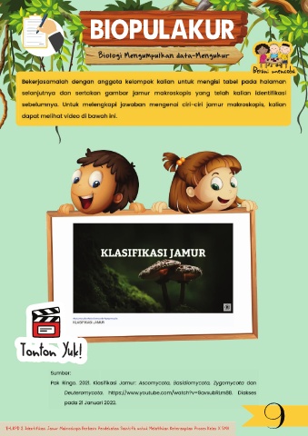 BIOPULAKUR BIOPULAKUR Biologi Mengumpulkan data-Mengukur Tonton Yuk! 9 E-LKPD 2 Identifikasi Jamur Makroskopis Berbasis Pendekatan Saintifik untuk Melatihkan Keterampilan Proses Kelas X SMA