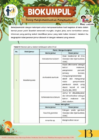 BIOKUMPUL Biologi Mengkomunikasikan-Menyimpulkan 13 E-LKPD 2 Identifikasi Jamur Makroskopis Berbasis Pendekatan Saintifik untuk Melatihkan Keterampilan Proses Kelas X SMA