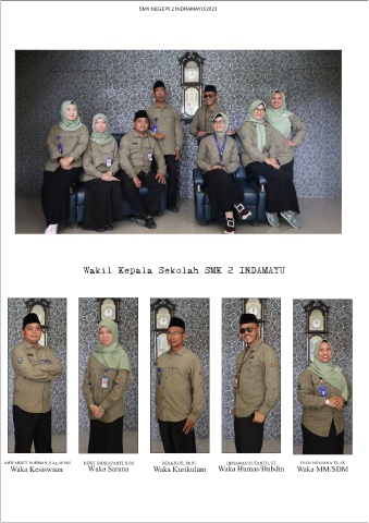 SMK NEGERI 2 INDRAMAYU/2023 Wakil Kepala Sekolah SMK 2 INDAMAYU ASEP ABDUL ROHMAN, S.Ag, M.Pd.I DEWI INDRAYANTI, S.Pd MAKRUS, M.Si HIMAWAN SUTANTO, ST DIAN NOVIANA TS, SS Waka Kesiswaan Waka Sarana Waka Kurikulum Waka Humas/Hubdin Waka MM/SDM