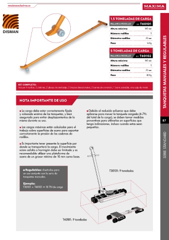 Diámetro rodillos 70 mm TANQUETAS MANUALES Y REGULABLES