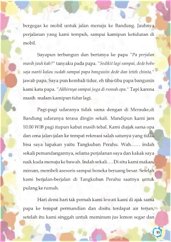 masih jauh kah?" tanyaku pada papa. “Sedikit lagi sampai, dede bobo