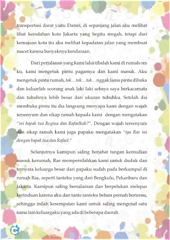 lihat  keindahan  kota  Jakarta  yang  begitu  megah,  tetapi  dari                     ajak Rae untuk masuk ke kamarnya untuk beristirahat. Kami