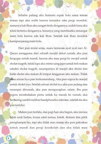 main bola karena ada kak Ifran. Setelah kak Ifran mondok ayahku udah menantiku dengan sabar di pintu gerbang sekolah,
