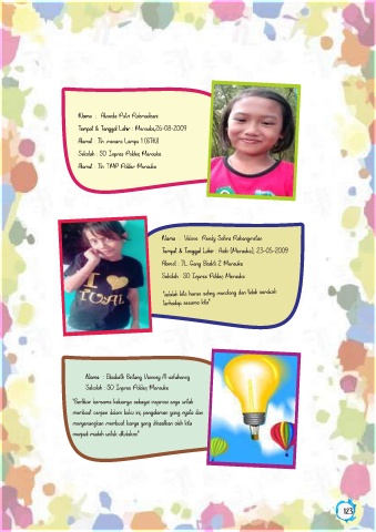 di bangku pendidikan tingkat Taman Kanak-kanak Salib Suci Tempat & Tanggal Lahir : Asiki (Merauke), 23-05-2009