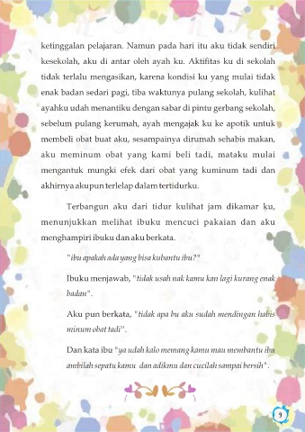 tidak enak badan, terasa sakit semua, batuk, demam dan pilek Dan kata ibu "ya udah kalo memang kamu mau membantu ibu
