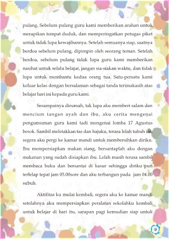 waktunya kita belajar". Sesampainya dirumah, tak lupa aku memberi salam dan