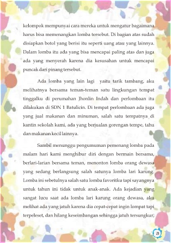 merasakan keceriaan suasana perlombaan. Sesekali aku kelompok mempunyai cara mereka untuk mengatur bagaimana