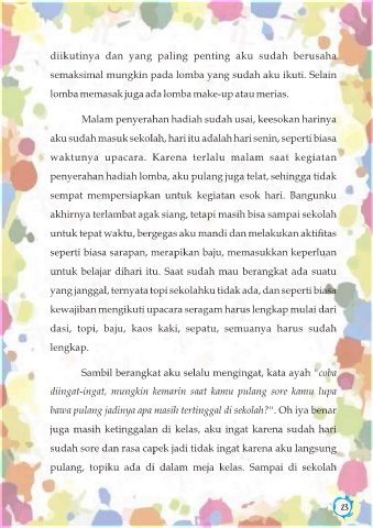 dan bingkisan hadiah yang besar juga. Sambil berangkat aku selalu mengingat, kata ayah "coba