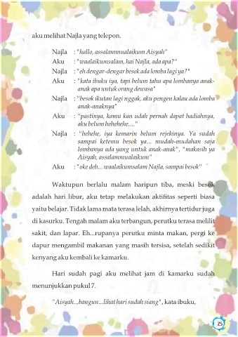Najla : "hallo, assalammualaikum Aisyah"