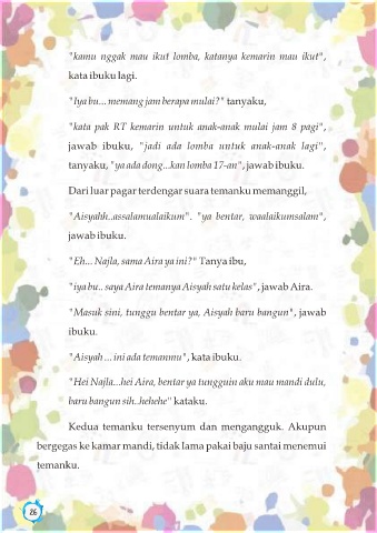 "Aisyah ... ini ada temanmu", kata ibuku.