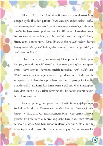 bermain di desa. Saat hari sudah malam Lani dan Sinta disuruh