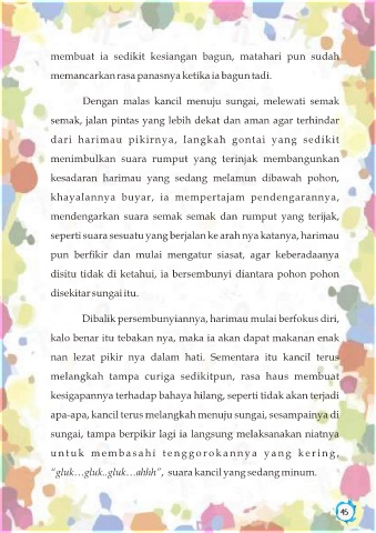 memalas pagi itu yang dirasakannya. nan lezat pikir nya dalam hati. Sementara itu kancil terus