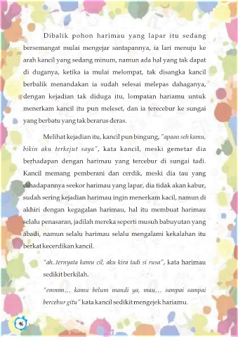 menerkam kancil itu pun meleset, dan ia terecebur ke sungai