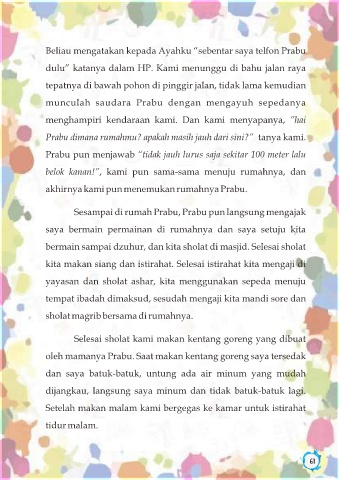 saudara Prabu, namun karena belum mengetahui posisi rumah Selesai sholat kami makan kentang goreng yang dibuat