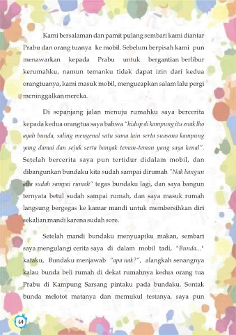 menawarkan kepada Prabu untuk bergantian berlibur pulang minta belikan rumah di sana“, gumam bundaku. Dan