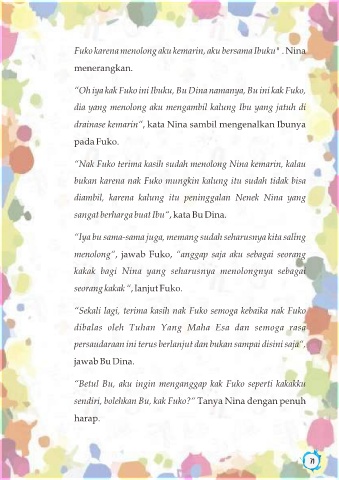 kata Nina mohon pamit. “Nak Fuko terima kasih sudah menolong Nina kemarin, kalau