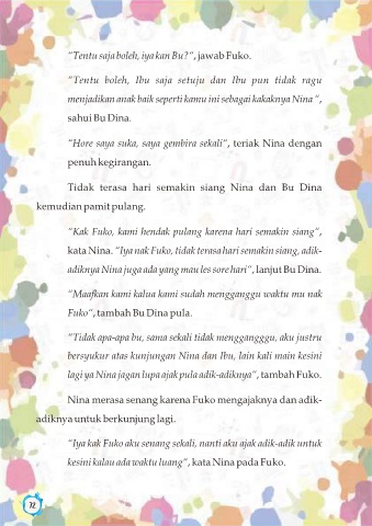 kata Nina. “Iya nak Fuko, tidak terasa hari semakin siang, adik-
