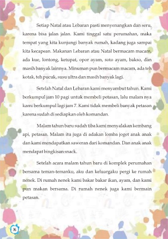 berkumpul jam 10 pagi untuk membeli petasan, lalu malam nya saling berkunjung, kadang mamanya mengundang kami untuk