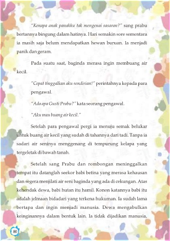 “Kenapa anak panahku tak mengenai sasaran?” sang prabu tetapi di takdirkan melahirkan anak manusia. Konon babi hutan