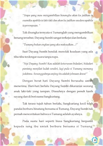 menerima. Hari-hari berlalu Dayang Sumbi dikaruniai seorang
