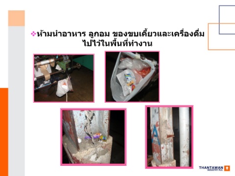 ่ ่ ❖ห้ามนาอาหาร ลูกอม ของขบเคี้ยวและเครืองดืม ไปไว้ในพื้นทีท างาน ่