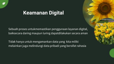 Keamanan Digital Sebuah proses untukmemastikan penggunaan layanan digital, baiksecara daring maupun luring dapatdilakukan secara aman Tidak hanya untuk mengamankan data yang kita miliki melainkan juga melindungi data pribadi yang bersifat rahasia