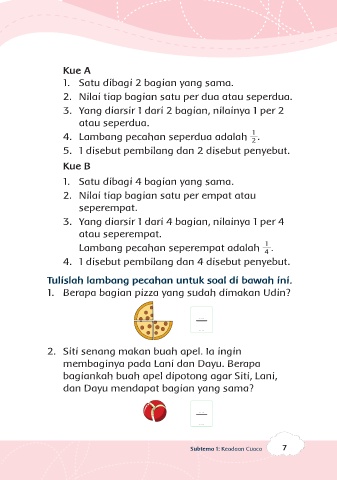 2. Nilai tiap bagian satu per dua atau seperdua.