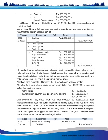 Dari contoh di atas, saldo akun kas kecil sebesar Rp. 1.250.000,00 tidak