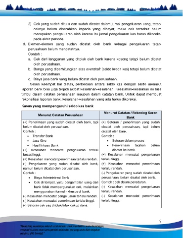 d. Elemen-elemen yang sudah dicatat oleh bank sebagai pengeluaran tetapi
