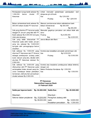 Saldo per laporan bank : Rp. 54.400.000 Saldo Kas : Rp. 45.500.000