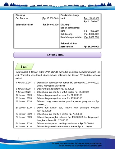 Pada tanggal 1 Januari 2020 CV INDRAJIT memutuskan untuk membentuk dana kas