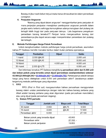 barang dalam urutan pembeliannya dengan kata lain bahwa barang pertama yang