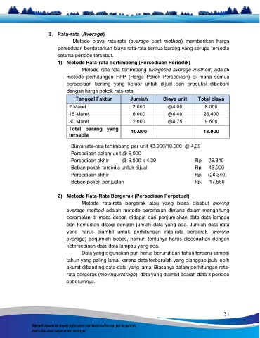 Metode biaya rata-rata (average cost mothod) memberikan harga
